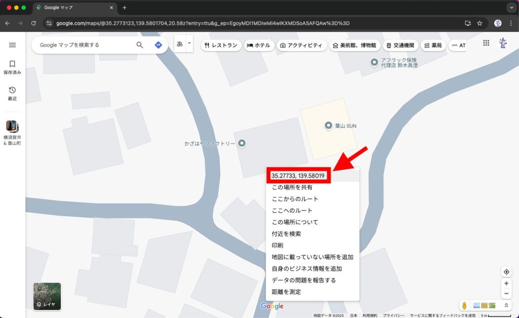 Googleマップで場所の座標を取得する方法